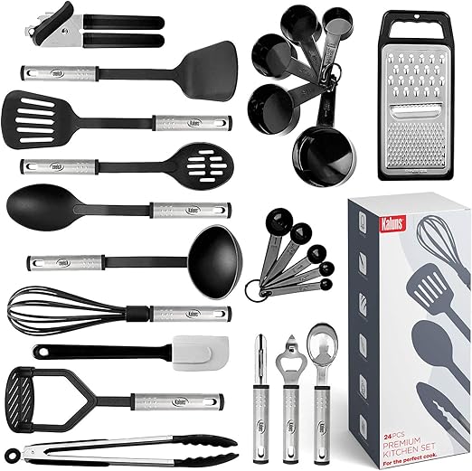 Amazon Com Kitchen Utensil Set 24 Nylon And Stainless Steel Utensil Set Non Stick And Heat Resistant Cooking Utensils Set Kitchen Tools Useful Pots And Pans Accessories And Kitchen Gadgets Black Kitchen Dining