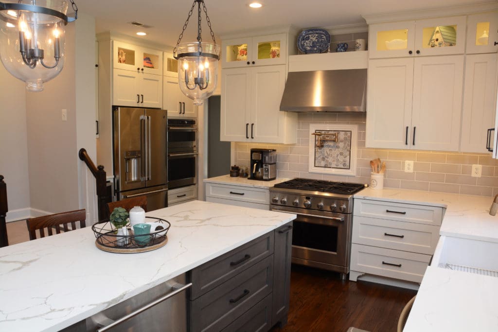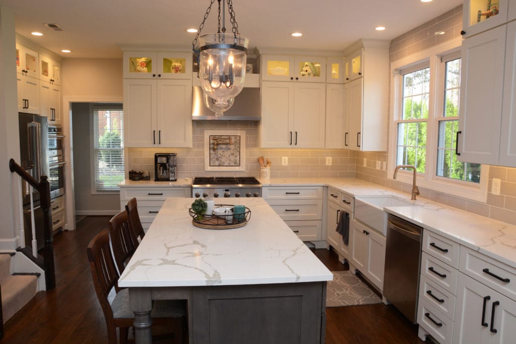 Kitchens Cabinets In Brookeville Md White Cabinetry With Hanging Lights