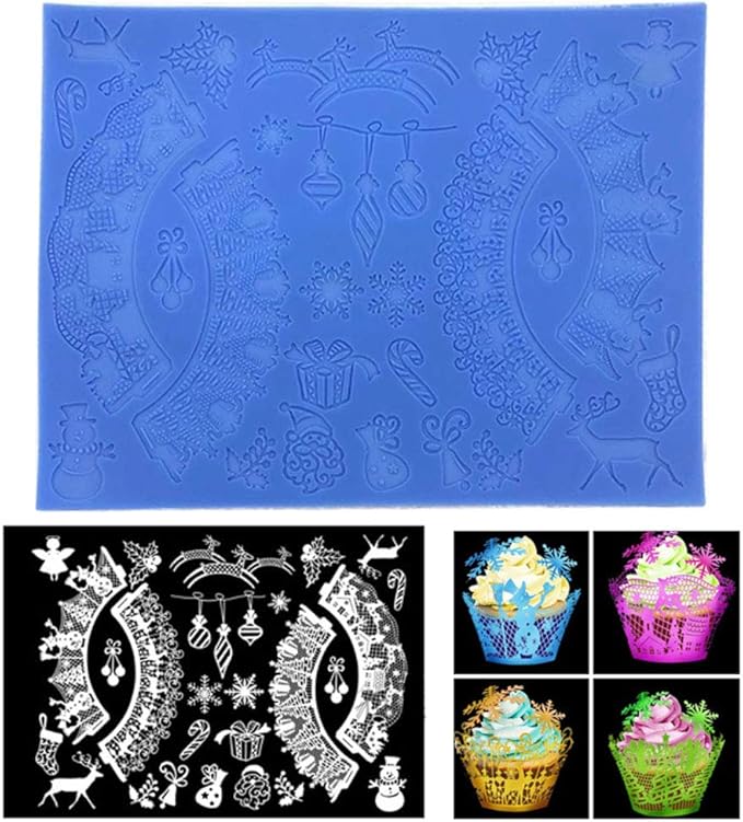 Amazon Com Four C Christmas Tree Present Snowman Elk Fondant Cake Lace Mold Lace Mat For Cake Large Silicone Cake Lace Mat Cake Decoration Sugar Craft Tools Of Bakeware Kitchen Dining