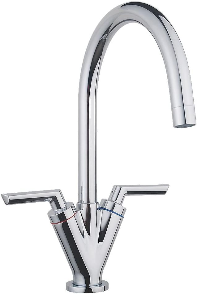 Cooke Lewis Mono Mixer Kitchen Tap Chrome 2834T 7095 INC VAT. Double Lever ¼ Turn Operation. Modern Mono Kitchen Sink Mixer Tap Swivel Spout Chrome Twin Handle Control.