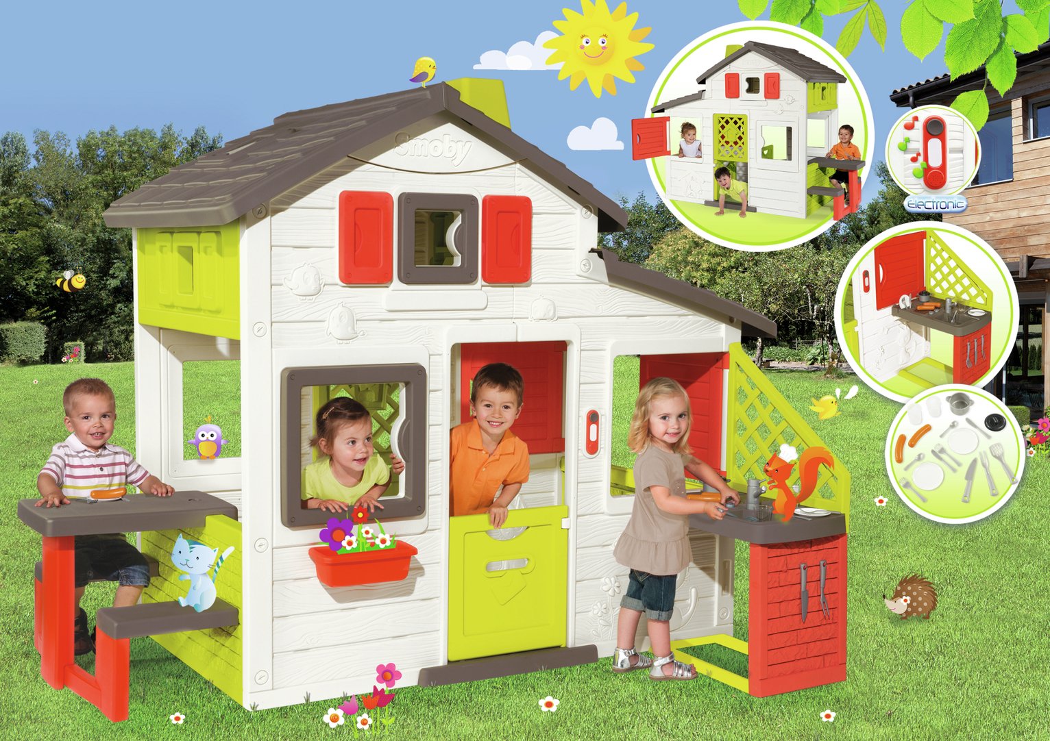 House garden picnic The house is equipped with. For kids who love to host playtimes for their siblings and friends the Smoby Friends House Playhouse Kitchen is a luxury humble abode for kiddies who love to have a place of their own to share the fun in. Children will have pleasure to play and cook like adults.