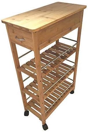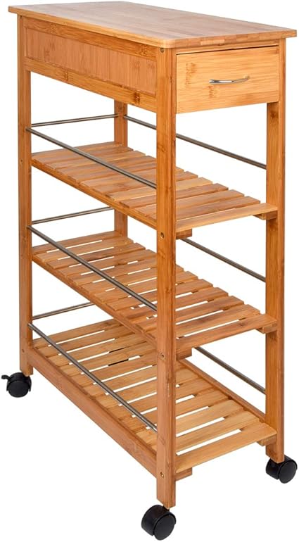 4 Tier Slim Portable Natural Bamboo Space Saver Wood Kitchen Trolley Organiser Cart Island Storage Basket Amazon Co Uk Kitchen Home