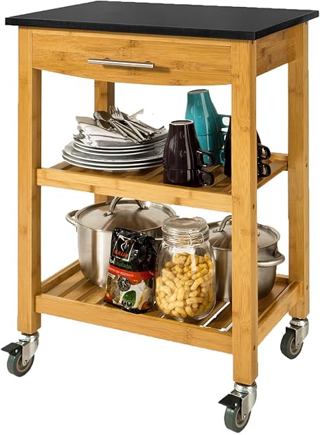 Sobuy Bamboo Kitchen Trolley Kitchen Cart With Black Granite Countertop Drawer And 2 Shelves Fkw28 Sch Amazon Co Uk Kitchen Home