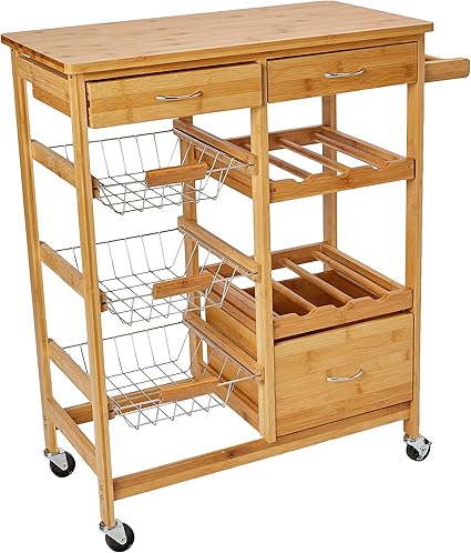 Kit Closet 7040028002 Kitchen Trolley With Baskets And Wine Rack Wood Amazon Co Uk Kitchen Home