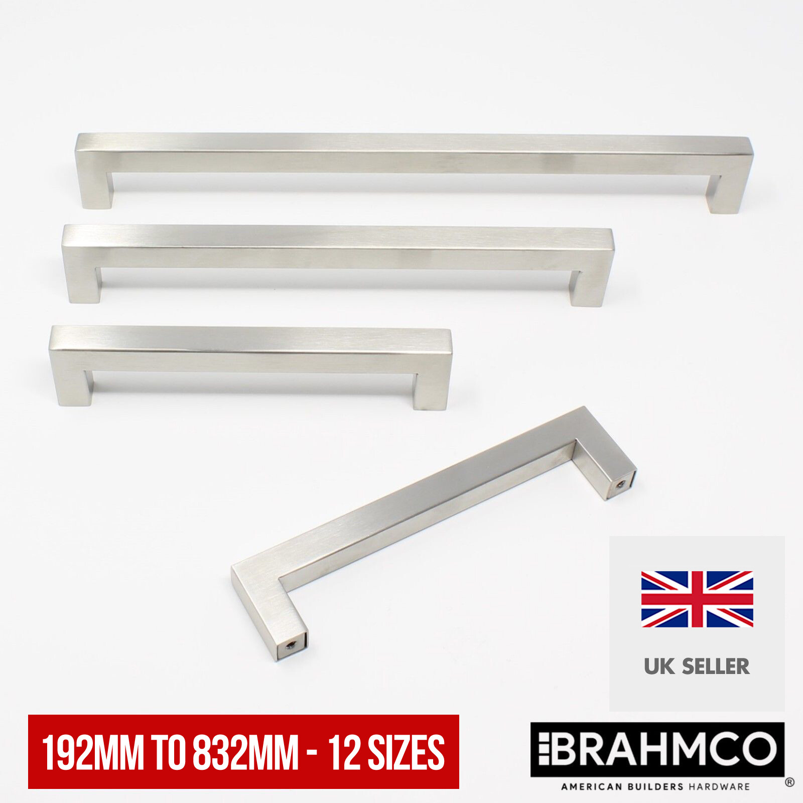 12mm Modern Square Bar Stainless Steel Kitchen Handles Door Cabinet 192mm 832mm Ebay