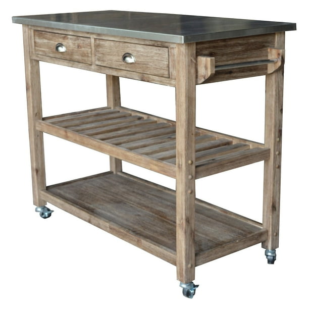 Linon Robbin Wood Kitchen Cart With Stainless Steel Top 36 Inches Tall Multiple Colors Walmart Com Walmart Com