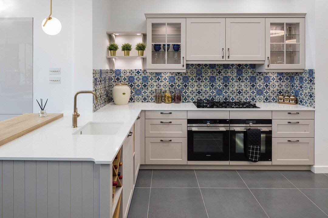 Sheraton Interiors On Twitter Make Your Kitchen Pop With One Of Our Bespoke Backsplashglass Designs For Your Kitchen Pictured Here In Our German Shaker Display Twickenham Showroom Bespoke Interiordecor Interiordesign Glass Https T Co