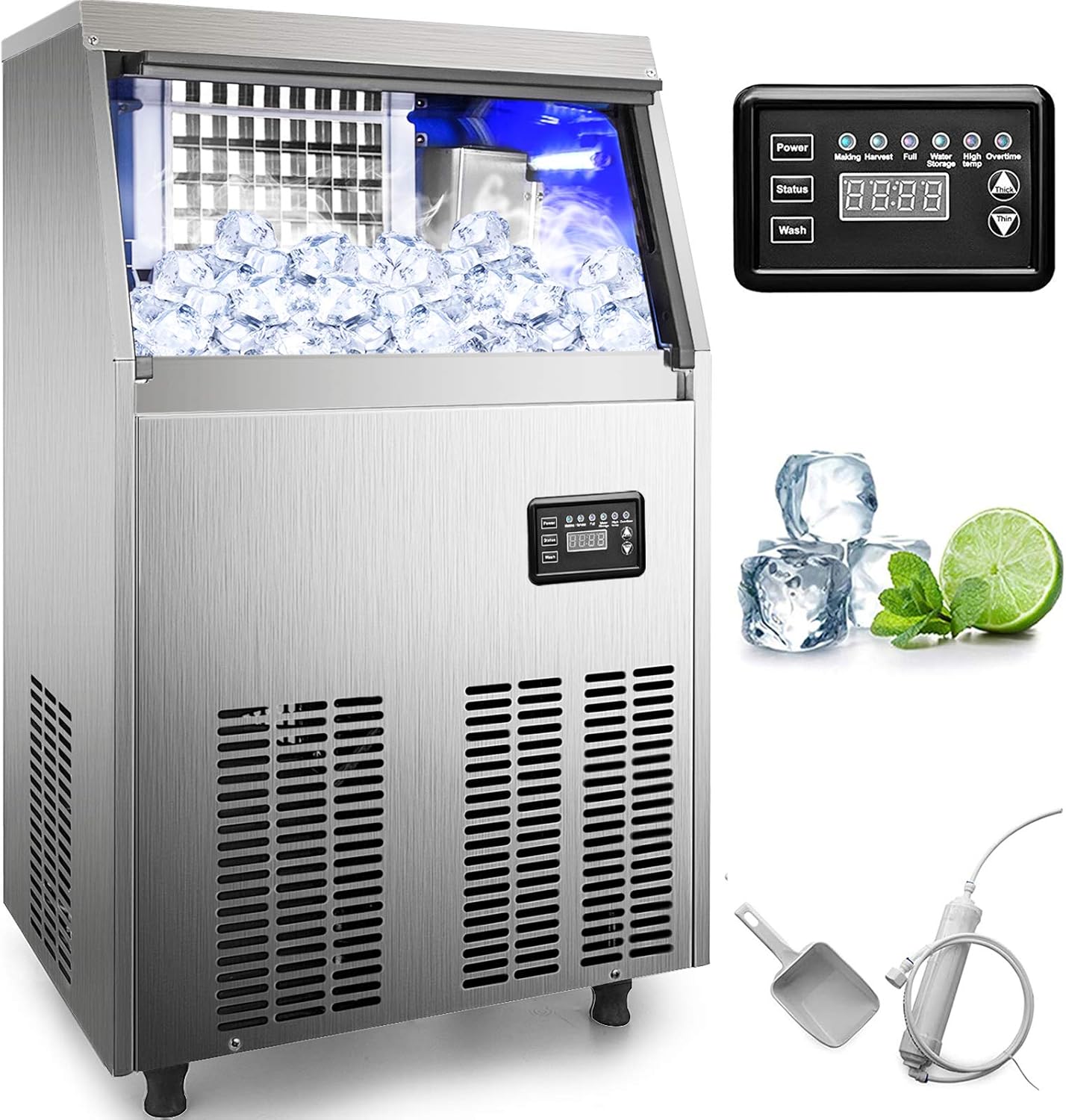 Amazon Com Vevor 110v Commercial Ice Maker 120 130lbs 24h With 33lbs Bin Full Heavy Duty Stainless Steel Construction Automatic Operation Clear Cube For Home Bar Include Water Filter Scoop Connection Hose Kitchen Dining