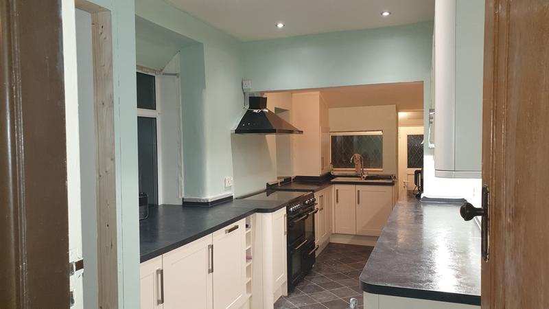 Kitchen Benchmarx Oxford Cream Cabinets Laminate Wood Effect Worktop Dulux Willow Tree Walls Gorenje Frid Kitchen Renovation Kitchen Cabinets Retro Kitchen