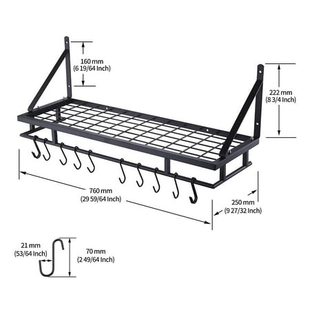 KES 30-Inch Kitchen Pan Pot Rack Wall Mounted Hanging Storage Organizer 2-Tire Wall Shelf with 12 Hooks Matte Black KUR215S75B-BK 7099 Make sure this fits by entering your model number. KES 24 Inch Kitchen Wall Mount Pot Pan Rack Wall Shelf With 10 Hooks Matte Black. 47 out of 5 stars 535 ratings.