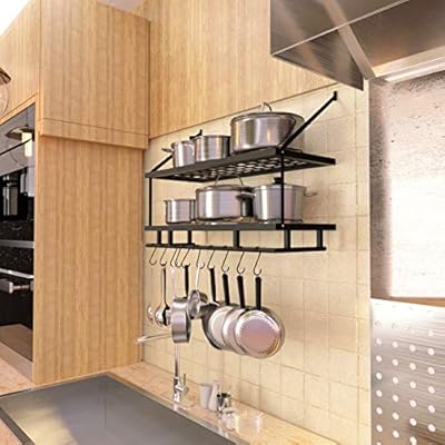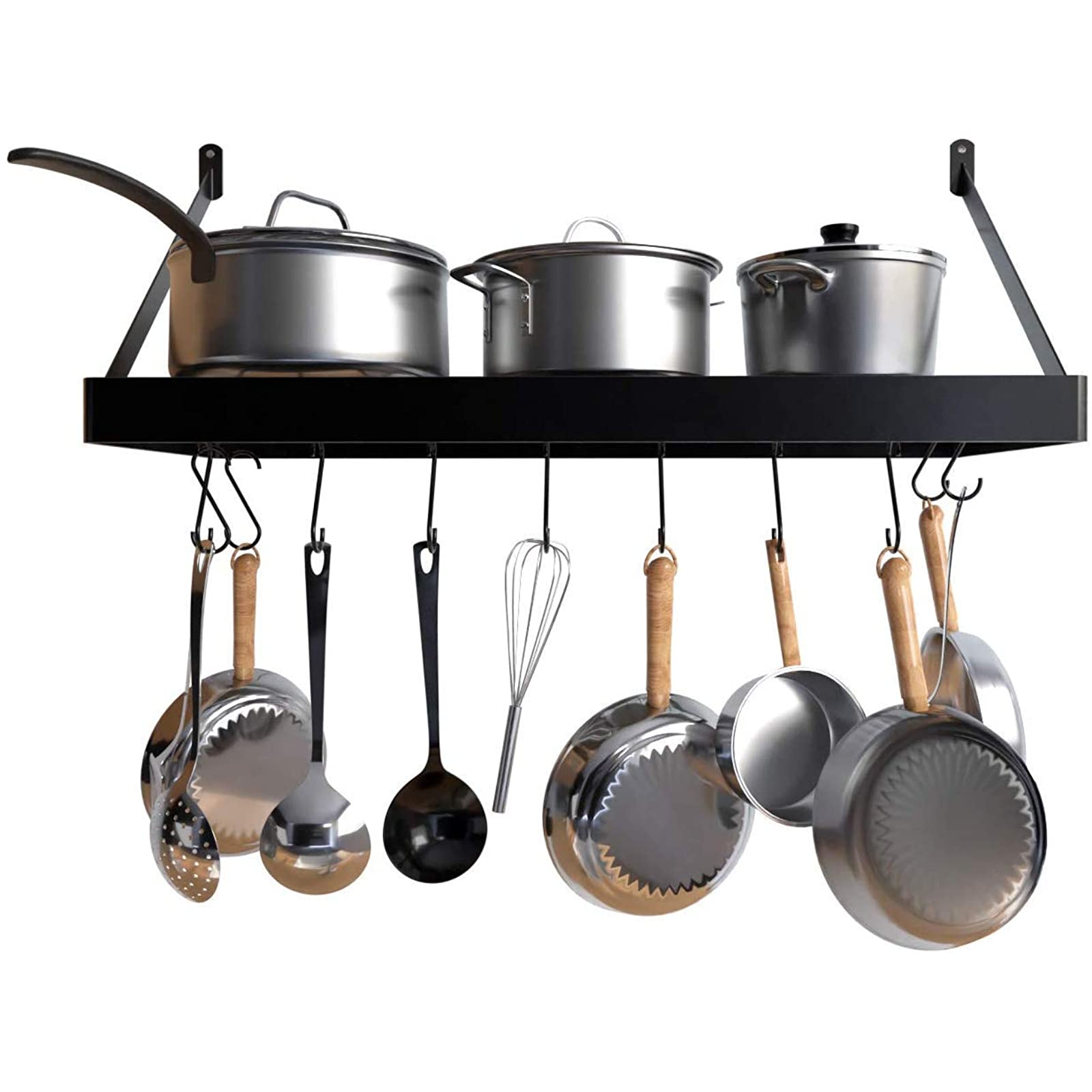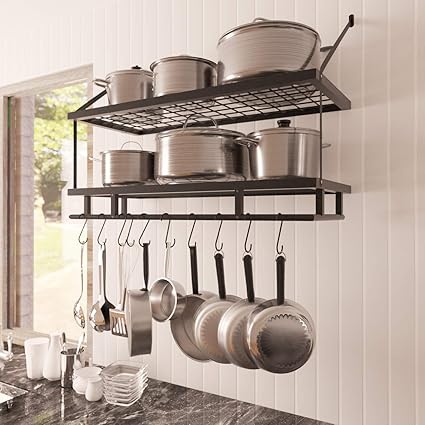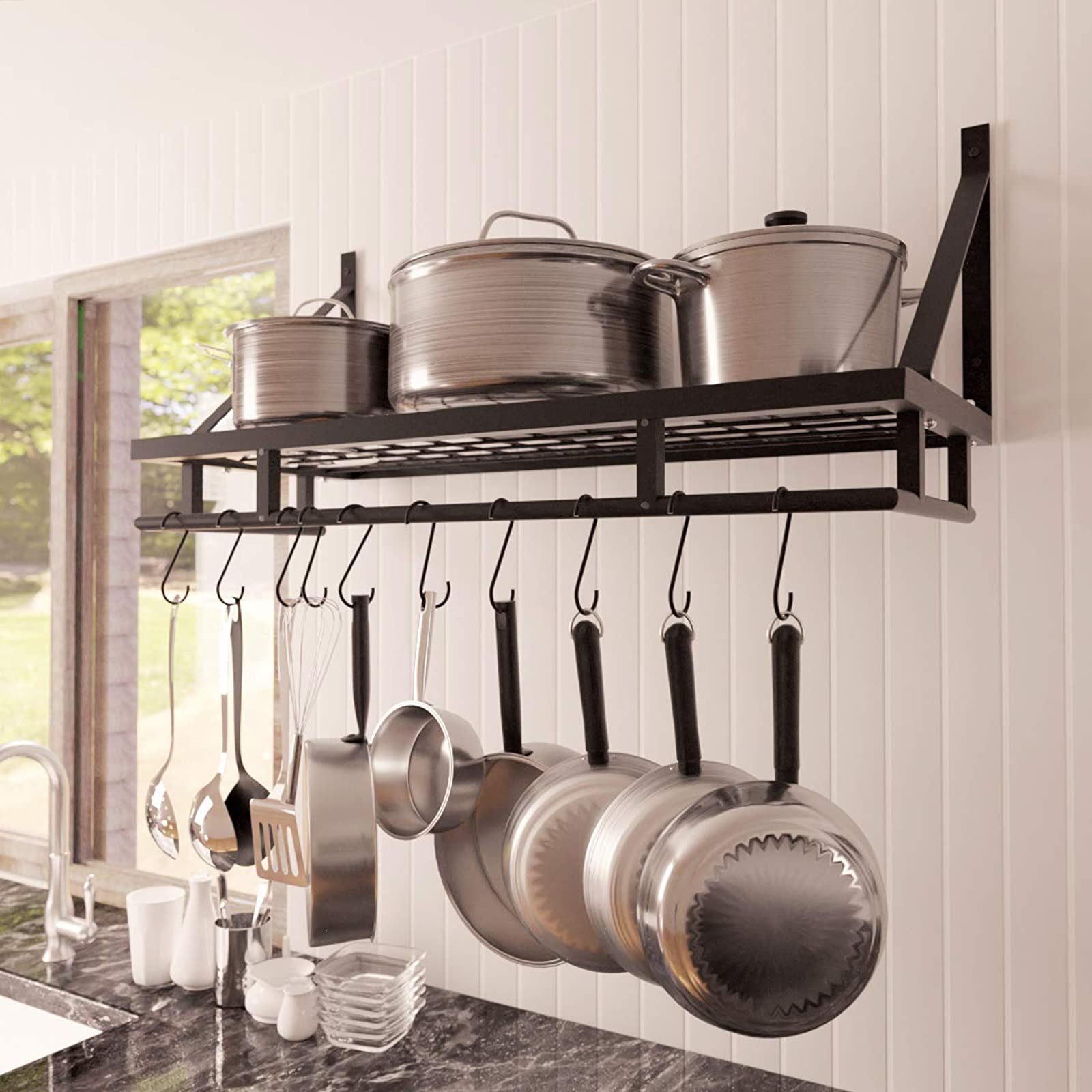 KES 30-Inch Kitchen Pot Rack - Mounted Hanging Rack for Kitchen Storage and Organization- Matte Black 2-Tier Wall Shelf for Pots and Pans with 12 Hooks - KUR215S75B-BK Visit the KES Store. Most people prefer a wall-mounted pan and pot organizer with a single rack. KES 24 Inch Kitchen Pot Pan Rack Wall Mounted Hanging Storage Organizer Wall Shelf With 10 Hooks.